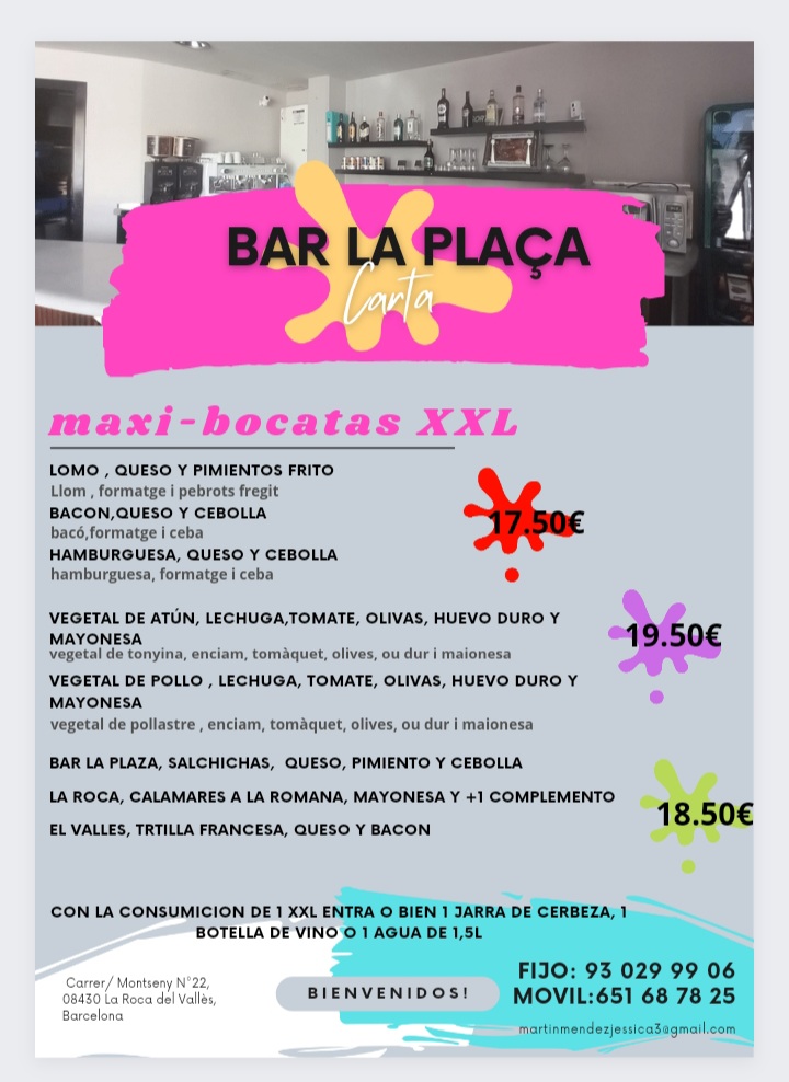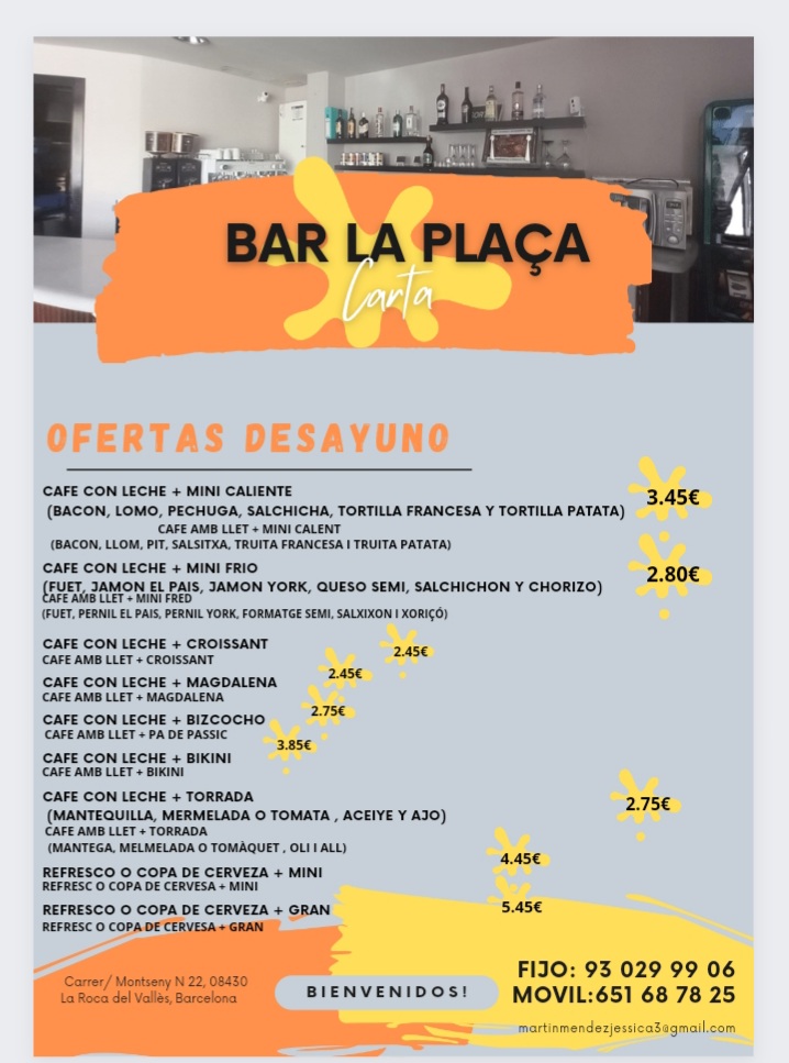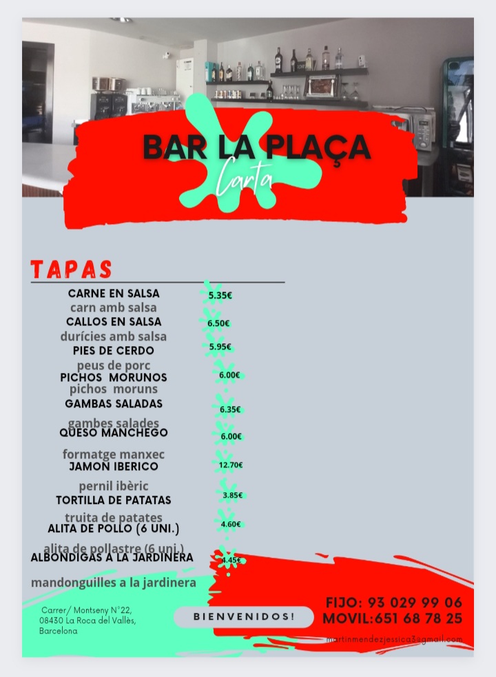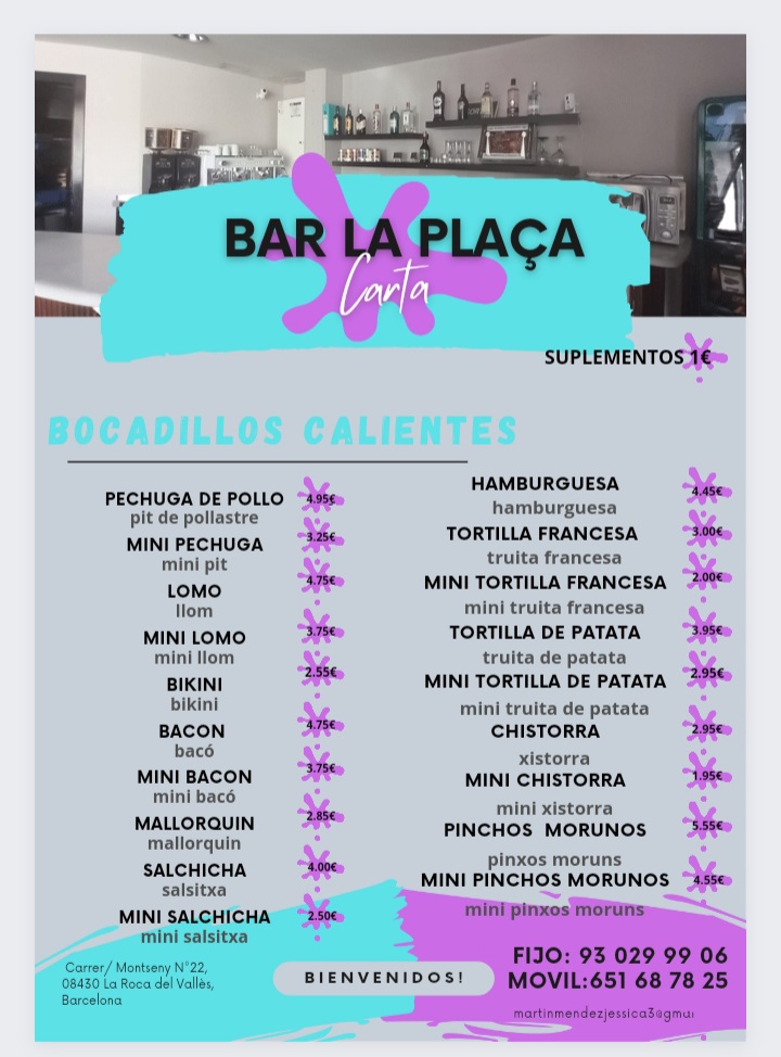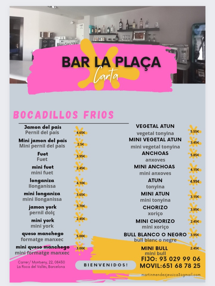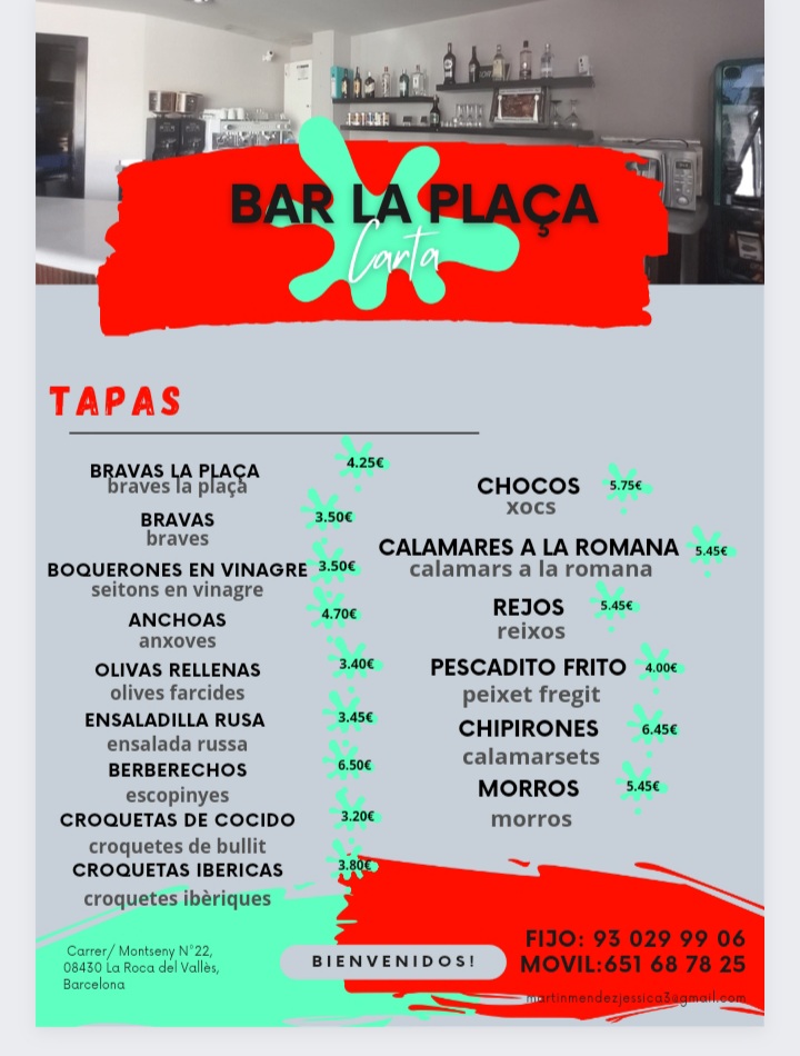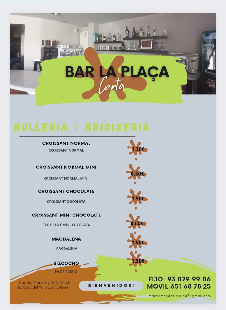 At Bar La Plaça La Roca, the menu feels thoughtfully balanced between comforting staples and lighter, well-executed plates, making it easy to see why locals return. The breakfast offering Café Con Leche Avena & Tostadas Con Tomate Y Aceite Por 3 40 EUR stands out for its simplicity done right, pairing smooth oat milk coffee with toast that highlights the quality of ripe tomato and olive oil. On the savory side, Crema Freda de Porro I Cruixent de Pernil brings a refreshing contrast of chilled leek cream with the salty crunch of cured ham, while Amanida Cesar delivers a familiar classic that fits naturally into the menu’s casual yet satisfying style. To finish, Coca Llavaneres de Crema Pastelera adds a sweet, traditional touch, offering a soft pastry base topped with rich pastry cream that rounds out the experience nicely. Taken together, these dishes reflect a menu that values approachable flavors, fair pricing, and consistency, making the dining experience feel complete without unnecessary complexity.